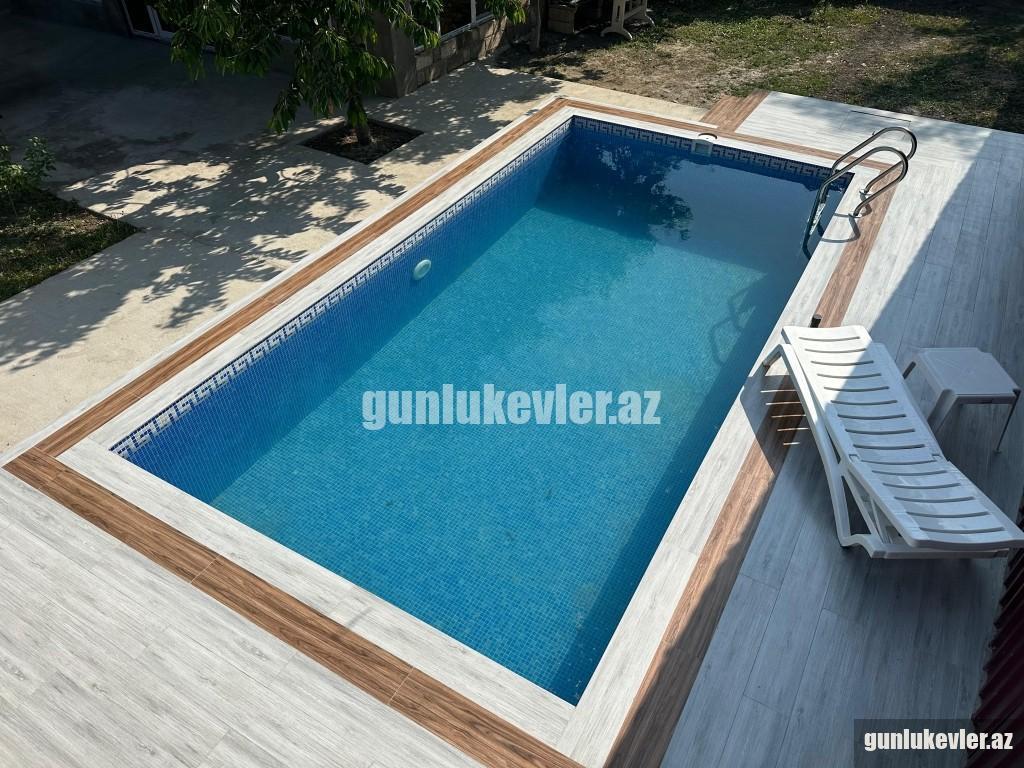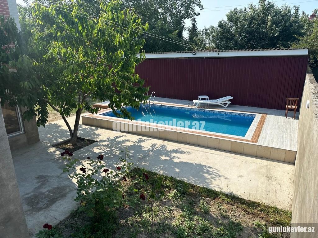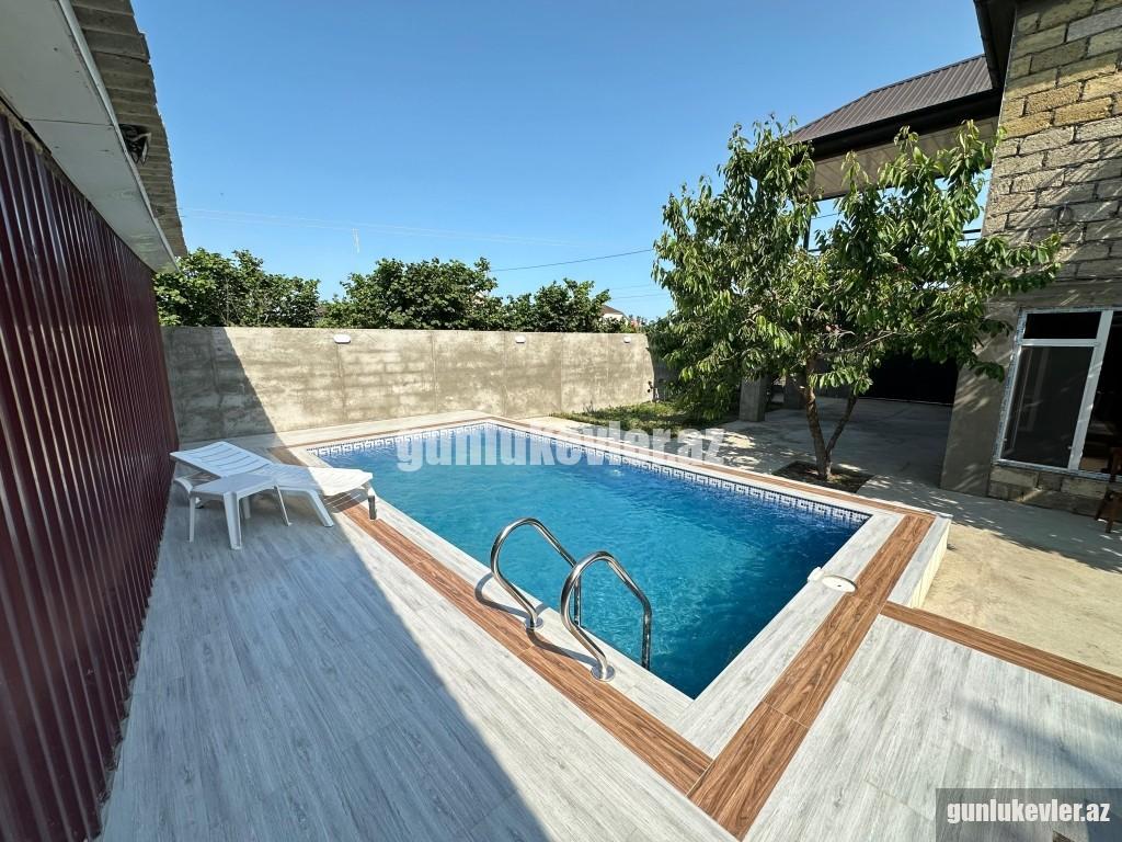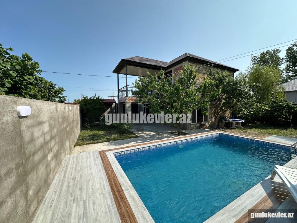Zəng edərkən qalacağınız tarixləri və qonaq sayını mütləq qeyd edin !! Evlərə giriş saatı 14:00, çıxış saatı isə 12:00-dur. Nabranda dənizə yaxın 2 mərtəbəli 3 otaqlı Hovuzlu həyət evi günlük kirayə verilir. 6 nəfər rahat qala bilər. Evdə qaz, su, işıq, kabel tv, hər 2 yataq otağında kondisioner, internet var. Evin 2-ci mərtəbəsində çox gözək terras hissə var, hansı ki, ən isti günlərdə belə burada çox qəşəng sərin meh əsir. Stol-stul, manqal, besedka, yaşıllıq ərazisi, 2 maşınlıq yeri mövcuddur. Həmçinin mətbəxdə lazımı avadanlıqlar, soyuducu, paltaryuyan maşın, qab-qacaq, manqalı, şişi, ventilyatoru da var. Günlük qiyməti 220 AZN. Vasitəçilik üçün xidmət haqqı 20 AZN.