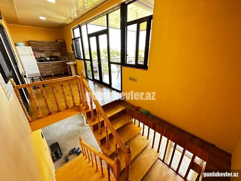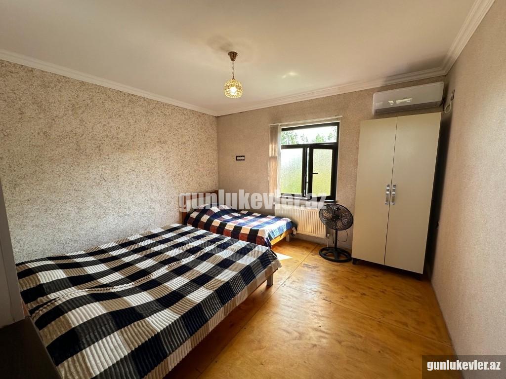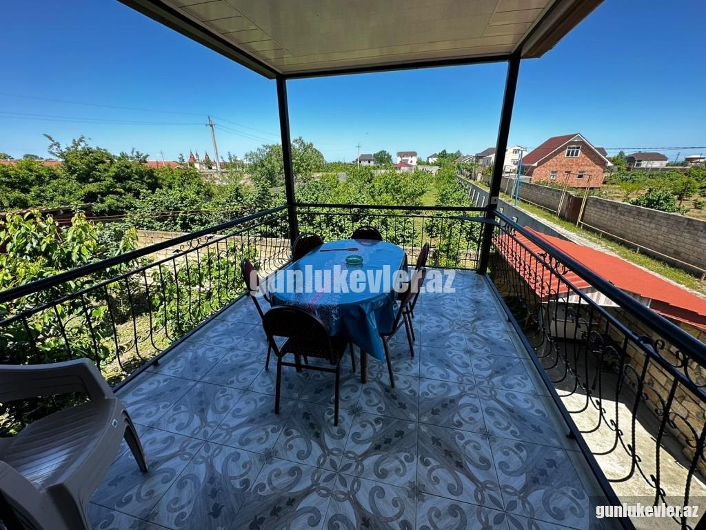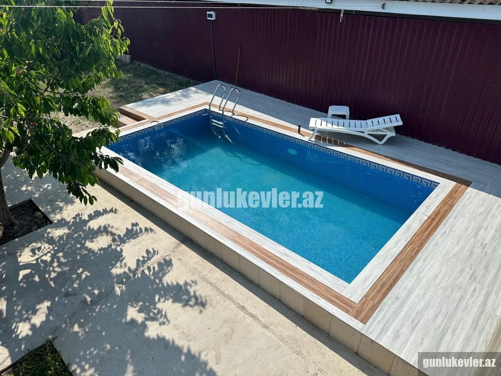 Zəng edərkən qalacağınız tarixləri və qonaq sayını mütləq qeyd edin !! Evlərə giriş saatı 14:00, çıxış saatı isə 12:00-dur. Nabranda dənizə yaxın 2 mərtəbəli 3 otaqlı Hovuzlu həyət evi günlük kirayə verilir. 6 nəfər rahat qala bilər. Evdə qaz, su, işıq, kabel tv, hər 2 yataq otağında kondisioner, internet var. Evin 2-ci mərtəbəsində çox gözək terras hissə var, hansı ki, ən isti günlərdə belə burada çox qəşəng sərin meh əsir. Stol-stul, manqal, besedka, yaşıllıq ərazisi, 2 maşınlıq yeri mövcuddur. Həmçinin mətbəxdə lazımı avadanlıqlar, soyuducu, paltaryuyan maşın, qab-qacaq, manqalı, şişi, ventilyatoru da var. Günlük qiyməti 220 AZN. Vasitəçilik üçün xidmət haqqı 20 AZN.