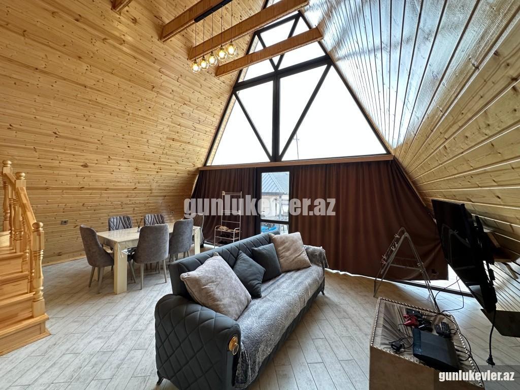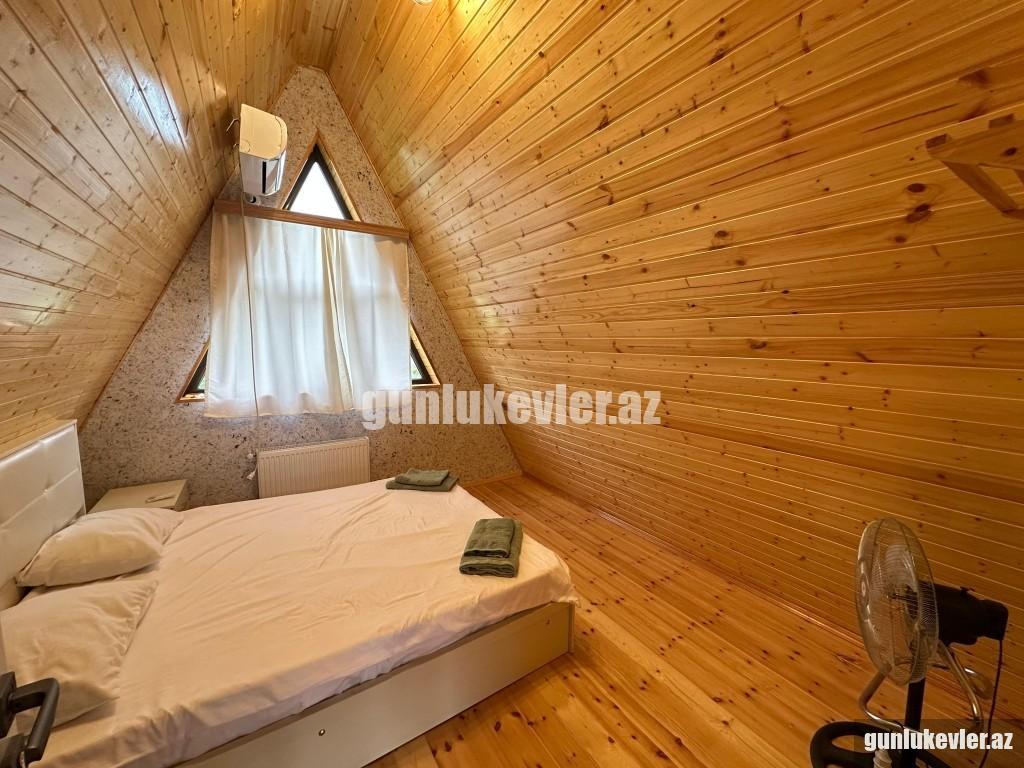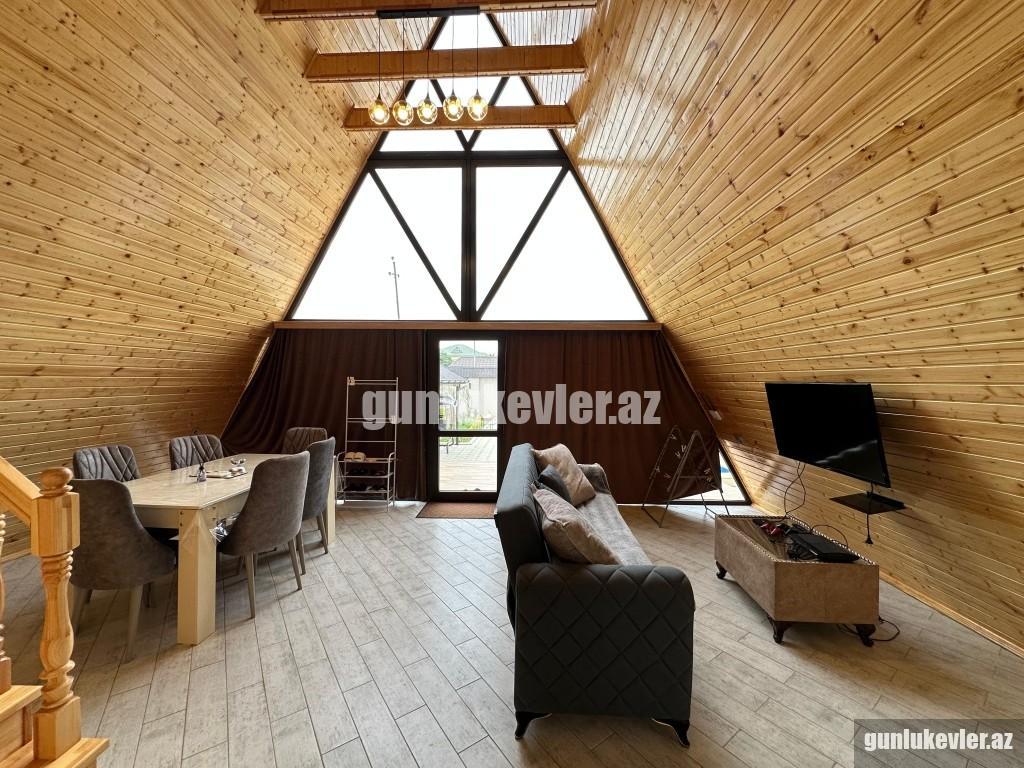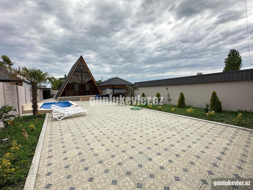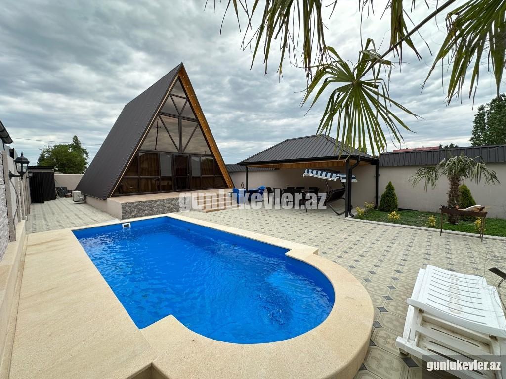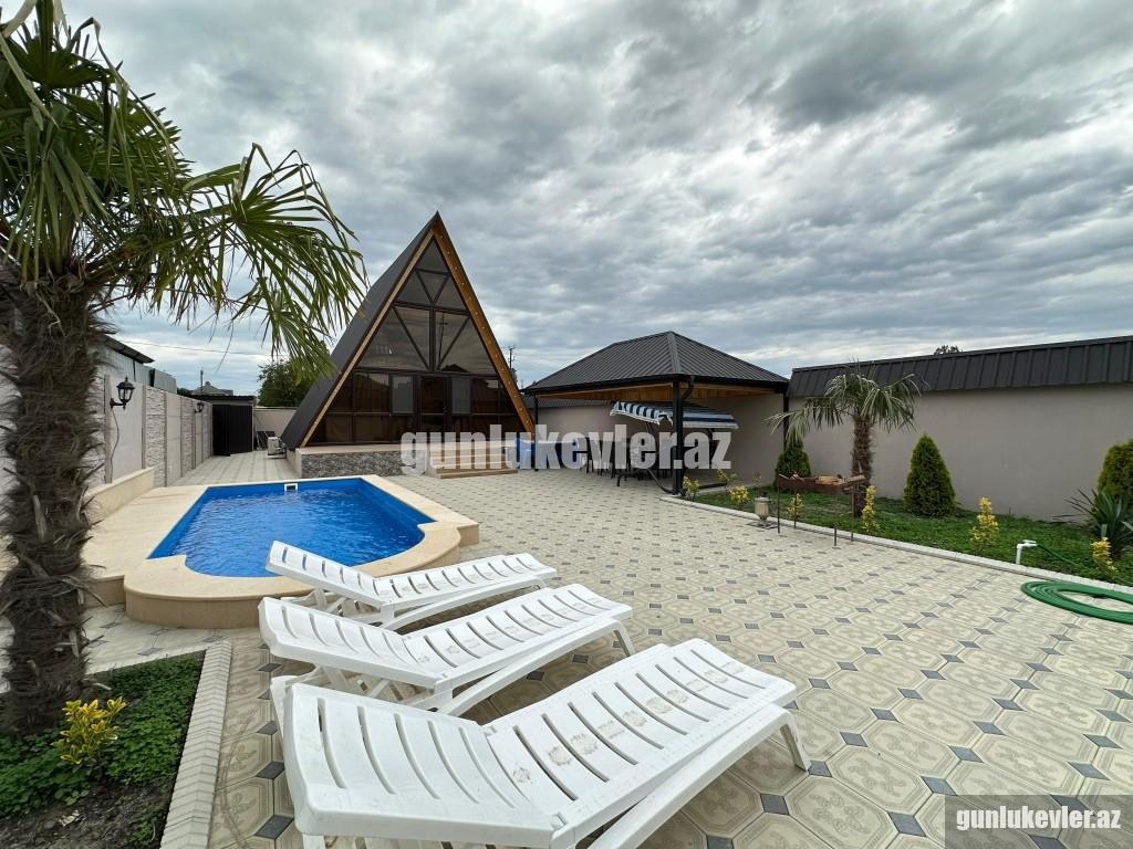 Zəng edərkən qalacağınız tarixləri və qonaq sayını mütləq qeyd edin !! Evlərə giriş saatı 14:00, çıxış saatı isə 12:00-dur. Nabranda çox prestijli ərazidə 3 otaqlı A-frame bağ evi. 8 nəfərin rahat istirahəti üçün hər bir şərait yaradılıb. Həyətində filterli isti hovuzu, besedkası, yellənçəyi, stol-stulu, sanitar qovşağı, parking yeri, manqalı, sacı, samovarı, lejabkaları var. Evdə kondisioner, tv, internet, playstation, karoeke, qəlyan, nərd, domino, loto, təmiz yataq dəstləri, soyuducu, ütü, qab-qacaq və.s üstün cəhətləri var. Dənizə 100-150 metr məsafədədir. Yaxınlıqda bir çox istirahət mərkəzləri, çimərlik ərazisi (besedkalar olan), kafe və restoranlar var. Günlük qiyməti həftə içi 270 AZN, həftə sonu və bayram günlərində 300 AZN-dir. Vasitəçilik üçün xidmət haqqı 20 AZN.