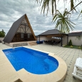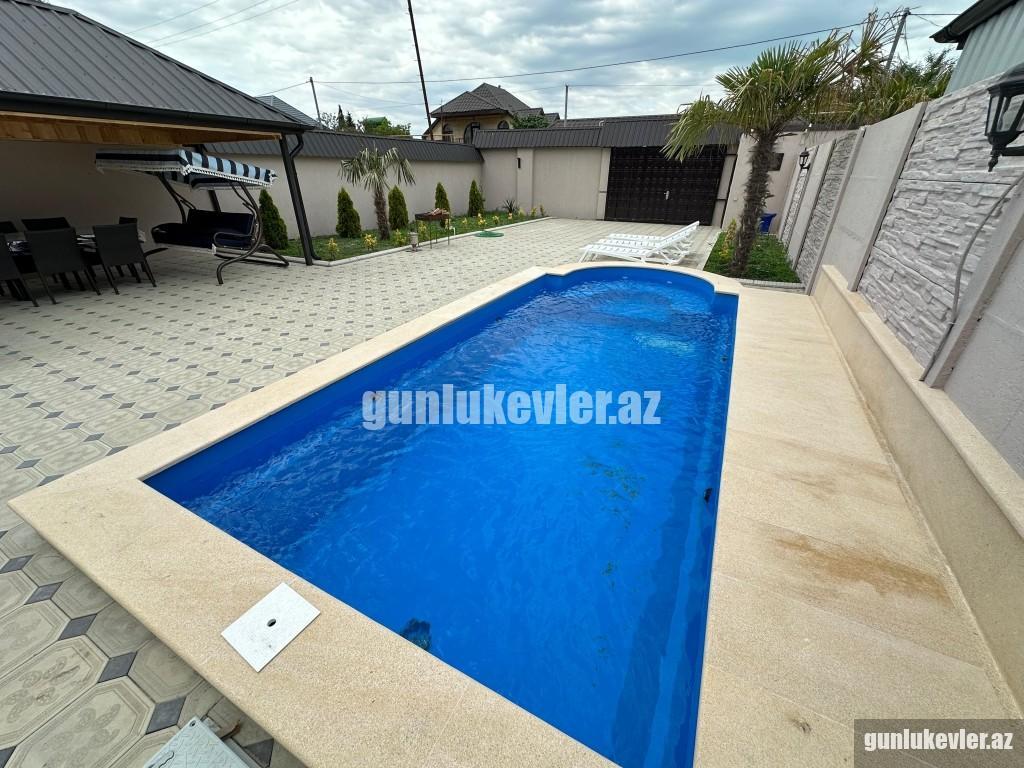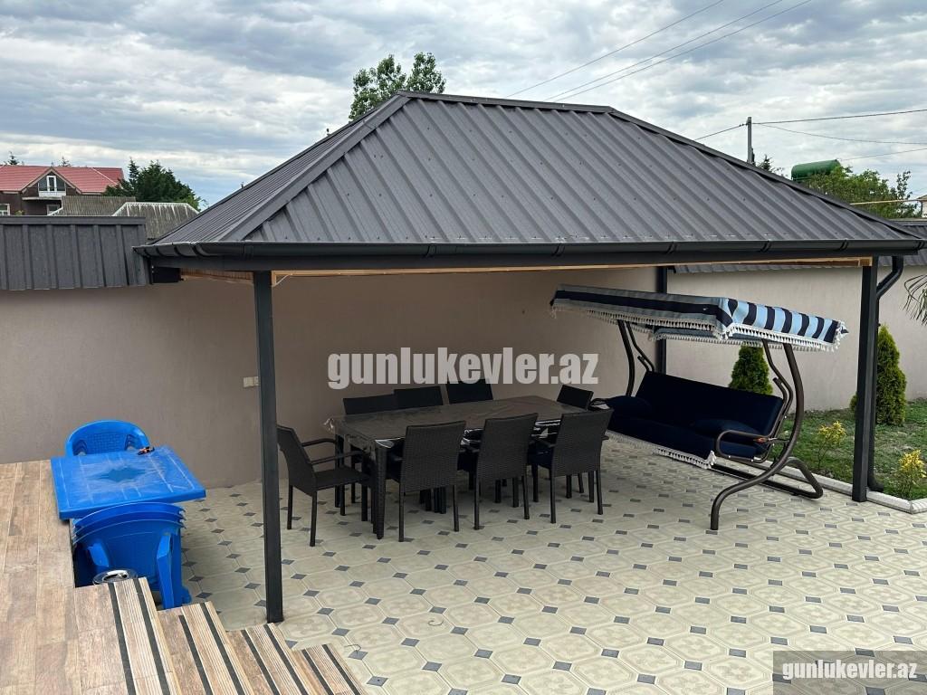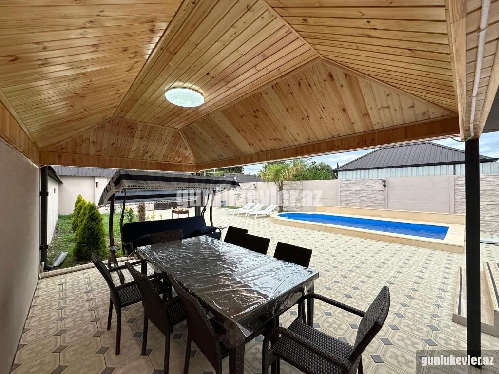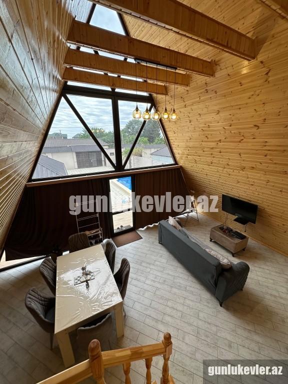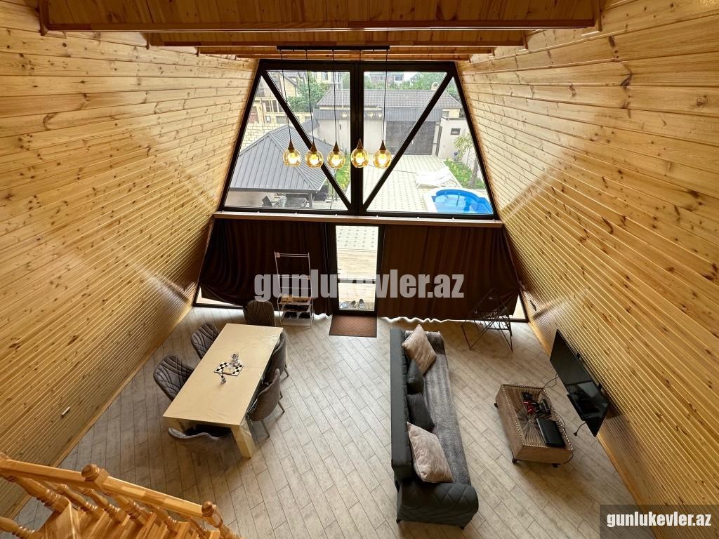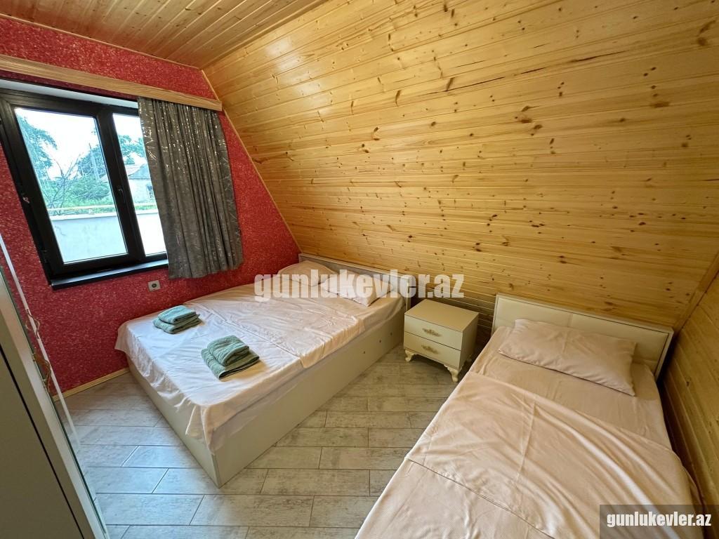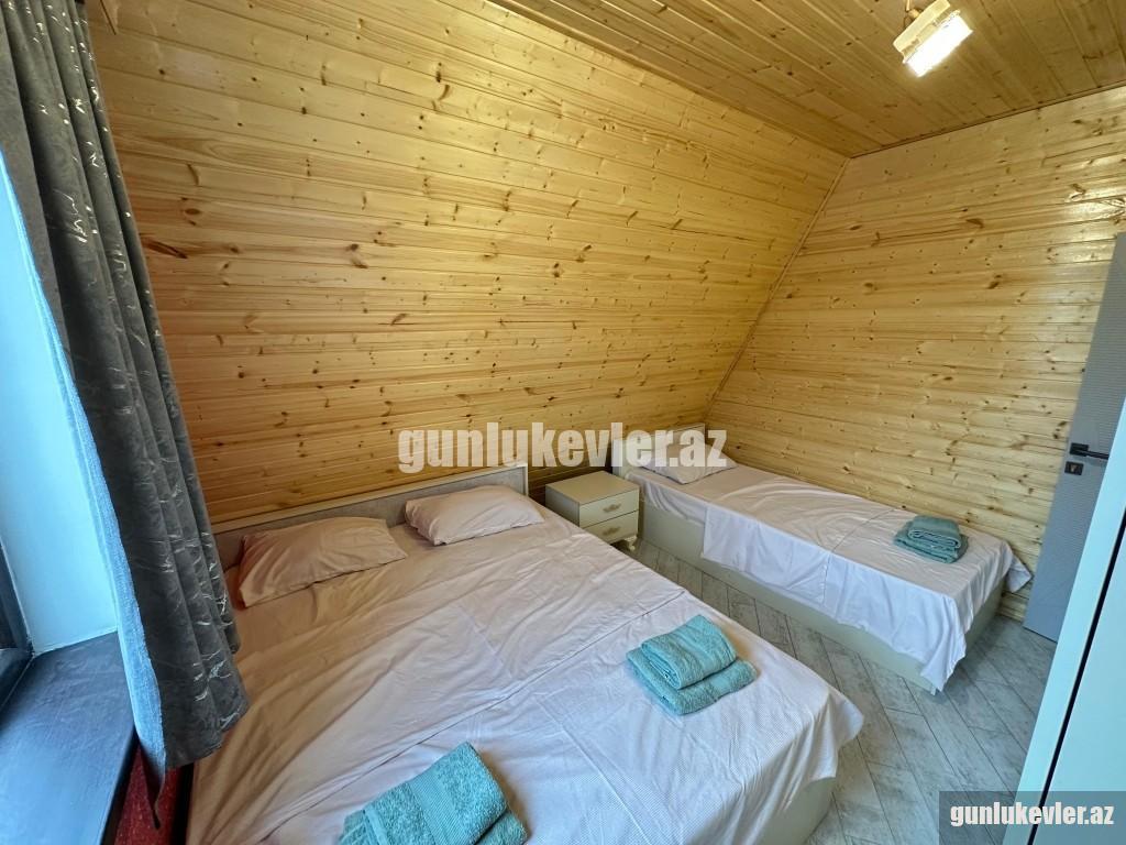 Zəng edərkən qalacağınız tarixləri və qonaq sayını mütləq qeyd edin !! Evlərə giriş saatı 14:00, çıxış saatı isə 12:00-dur. Nabranda çox prestijli ərazidə 3 otaqlı A-frame bağ evi. 8 nəfərin rahat istirahəti üçün hər bir şərait yaradılıb. Həyətində filterli isti hovuzu, besedkası, yellənçəyi, stol-stulu, sanitar qovşağı, parking yeri, manqalı, sacı, samovarı, lejabkaları var. Evdə kondisioner, tv, internet, playstation, karoeke, qəlyan, nərd, domino, loto, təmiz yataq dəstləri, soyuducu, ütü, qab-qacaq və.s üstün cəhətləri var. Dənizə 100-150 metr məsafədədir. Yaxınlıqda bir çox istirahət mərkəzləri, çimərlik ərazisi (besedkalar olan), kafe və restoranlar var. Günlük qiyməti həftə içi 270 AZN, həftə sonu və bayram günlərində 300 AZN-dir. Vasitəçilik üçün xidmət haqqı 20 AZN.