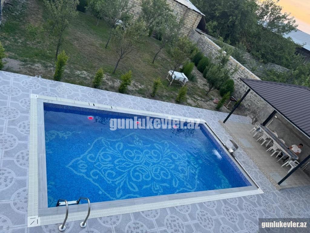 Zəng edərkən qalacağınız tarixləri və qonaq sayını mütləq qeyd edin !! Evlərə giriş saatı 14:00, çıxış saatı isə 12:00-dur. Ev Şəki şəhərinin mərkəzinə yaxın ərazidədir. 12 sotda 5 otaqlı evdir. 10-12 nəfər qala bilər. Kondisioneri, kombi istilik sistemi, interneti var. Həyətində geniş filterli hovuzu, şəlaləsi, besedkası var. Günlük qiyməti 300 AZN. Vasitəçilik üçün xidmət haqqı 20 AZN.