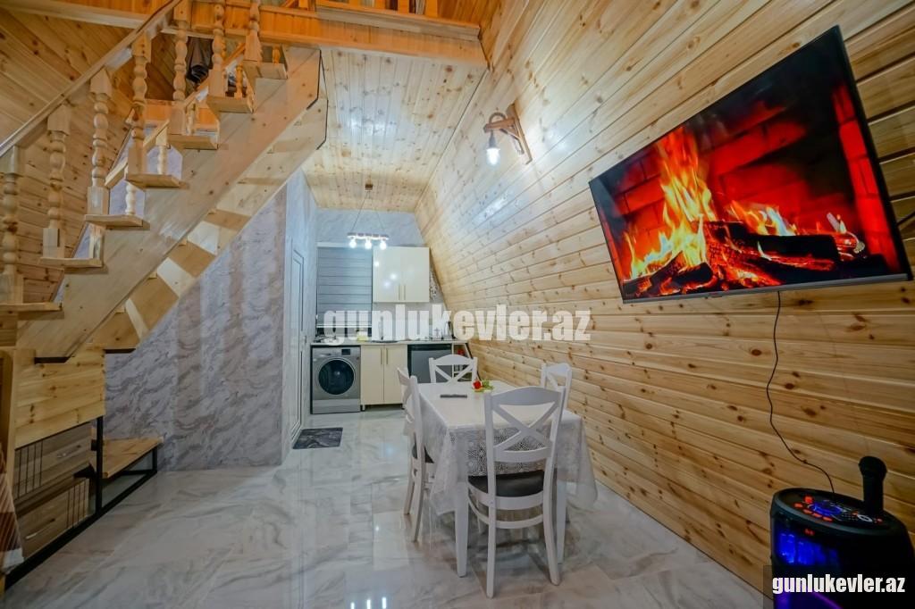 Zəng edərkən qalacağınız tarixləri və qonaq sayını mütləq qeyd edin !! Evlərə giriş saatı 14:00, çıxış saatı isə 12:00-dur. Qusar rayonu Çiləgir kəndinə gedən yolun üstündə, Qusar çayına yaxın ərazidə super şəraitli 2 mərtəbəli A-Frame ev günlük kirayə verilir. Evdə rahatlıqla 4 nəfər qala bilər. Smart Tv, internet, manqal, samovar, paltaryuyan, soyuducu, qab-qacaq var. Evin istilik sistemi kombidir, isti döşəmədir. Həyətində çardağı, ocaq qalamaq üçün yer, oturacaqlar mövcuddur. Əla panorama var. Günlük qiyməti 120 AZN. Vasitəçilik üçün xidmət haqqı 20 AZN.