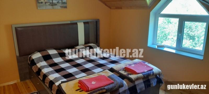 Zəng edərkən qalacağınız tarixləri və qonaq sayını mütləq qeyd edin !! Evlərə giriş saatı 14:00, çıxış saatı isə 12:00-dur. Qax rayonu Qaxbaş kəndində, dağ və meşə panoramalı 2 mərtəbə 4 otaqlı bağ evi günlük kirayə verilir. 1-ci mərtəbədə studio zal+mətbəx, 1 yataq otağı, sanuzel var. 2-ci mərtəbədə 1 yataq otağı, 1 qonaq (oturmaq) otağı və eyvan var. 6-8 nəfərin rahat istirahəti üçün evdə şərait var. 2-ci mərtəbədən çox gözəl mənzərəsi var. Həyətində meyvə ağacları, manqalı, samovarı, besedkası var. Günlük qiyməti 100 AZN. Vasitəçilk üçün Xidmət haqqı 20 AZN.