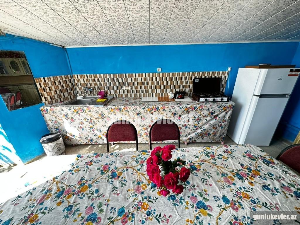 Zəng edərkən qalacağınız tarixləri və qonaq sayını mütləq qeyd edin !! Evlərə giriş saatı 14:00, çıxış saatı isə 12:00-dur. Nabranda dənizə məsafə təxmini 500 metrdir. Ev 6 otaqlıdır. Həyətində axar çayı, çay üzərində besetkası, manqalı, samovarı, əla yaşıllıq zonası var. 10 nəfər rahatlıqla qala bilər. Su, qaz, işıq daimidir. Səliqəli otaqları, təmiz yataq dəstləri, kabel tv, internet var. Ev sakit yerdə yerləşir. Günlük qiyməti 90 AZN. Vasitəçilk üçün Xidmət haqqı 20 AZN.