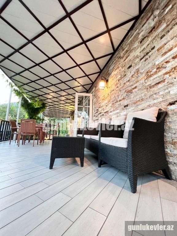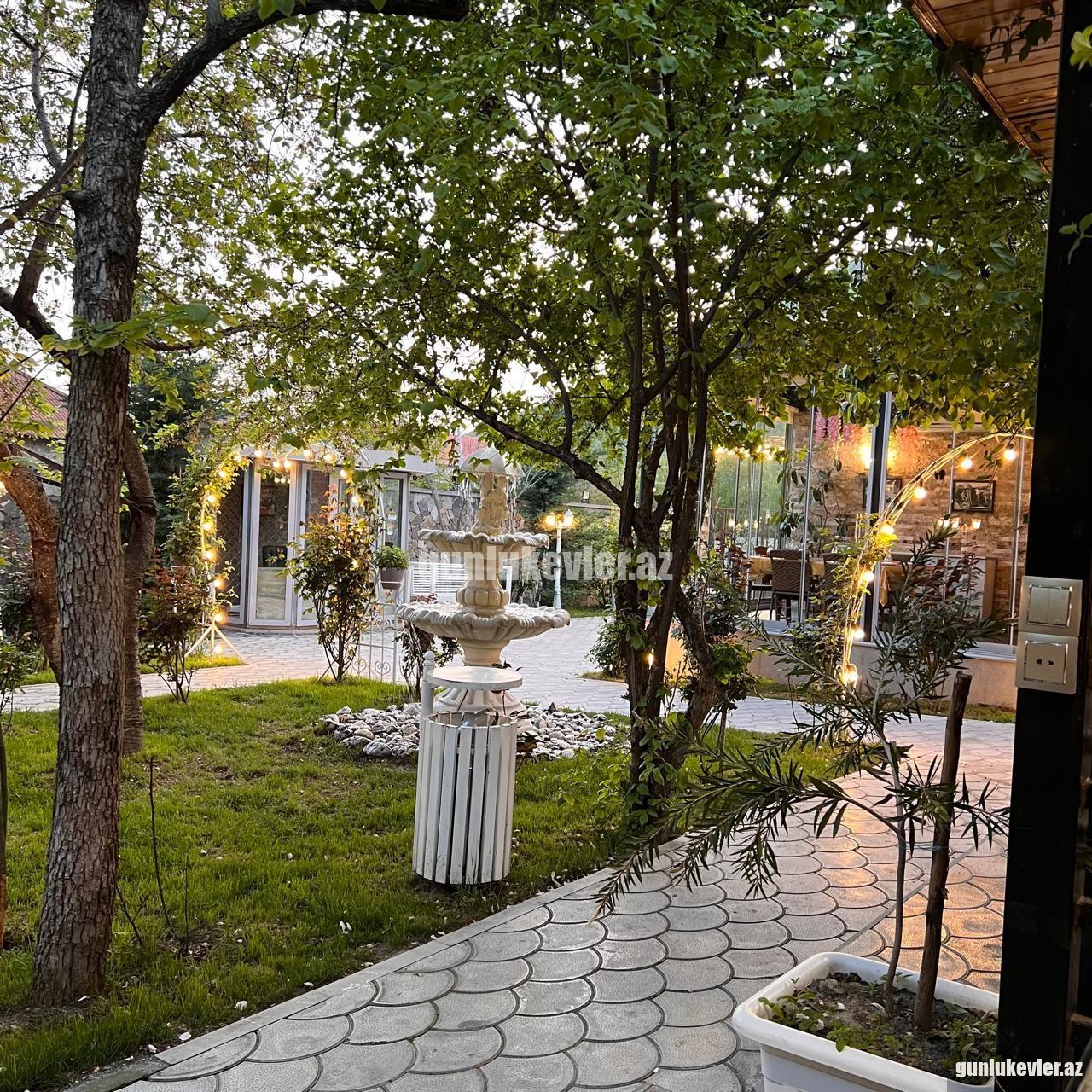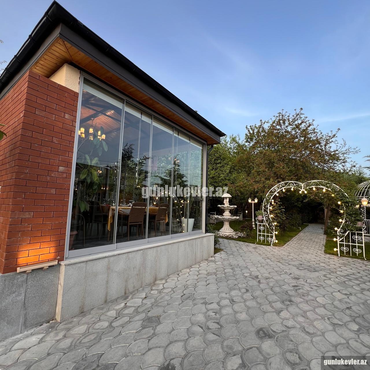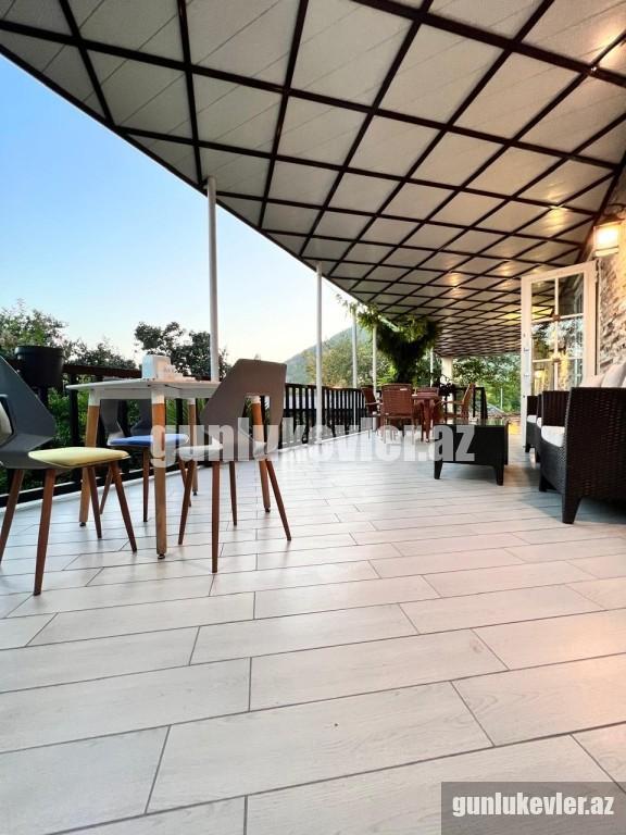 Zəng edərkən qalacağınız tarixləri və qonaq sayını mütləq qeyd edin !! Evlərə giriş saatı 14:00, çıxış saatı isə 12:00-dur. Şəkidə Marxal yolunda ailəvi istirahət mərkəzi. Canlı musiqi, Avropa mətbəxi, restoran, kabinetlər, teras və panoraması var. 2 nəfərlik – 80 AZN 3 nəfərlik – 100 AZN Suit otaq (2 yataq otaqlı, 4-5 nəfərlik) – 140 AZN Qiymətə səhər yeməyi də daxildir. Vasitəçilik üçün xidmət haqqı 20 AZN.